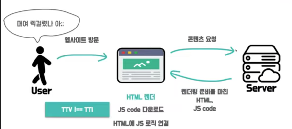 `TTV(Time To View)와 TTI(Time To Interact) 간의 시간 간격이 존재한다는 단점` 이 있다